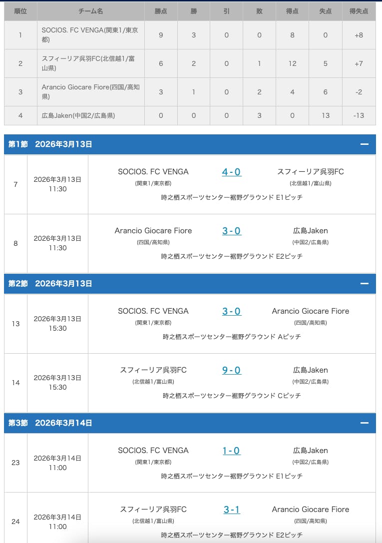3月13日から15日まで全日本O-30女子サッカー大会の全国大会で試合をしてきました。