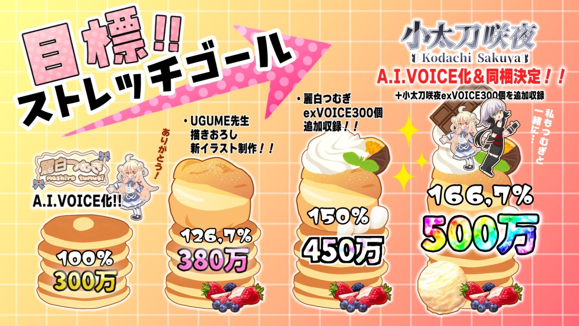 ストレッチゴール②:450万円『麗白つむぎ』のexVOICE300個を追加収録・実装します。