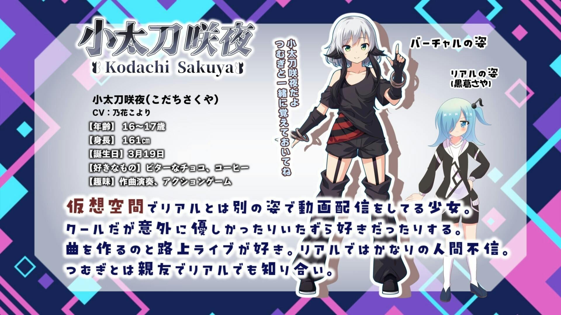 天真爛漫な「麗白つむぎ」と、クールで歌が好きな「小太刀咲夜」。血の繋がりこそありませんが、親友同士であるこの2人を、どうしても「セットで」皆様の元へお届けしたいのです。皆様の支援が集まれば、彼女たちはゲームの中だけでなく、動画や歌の世界へと羽ばたくことができます。