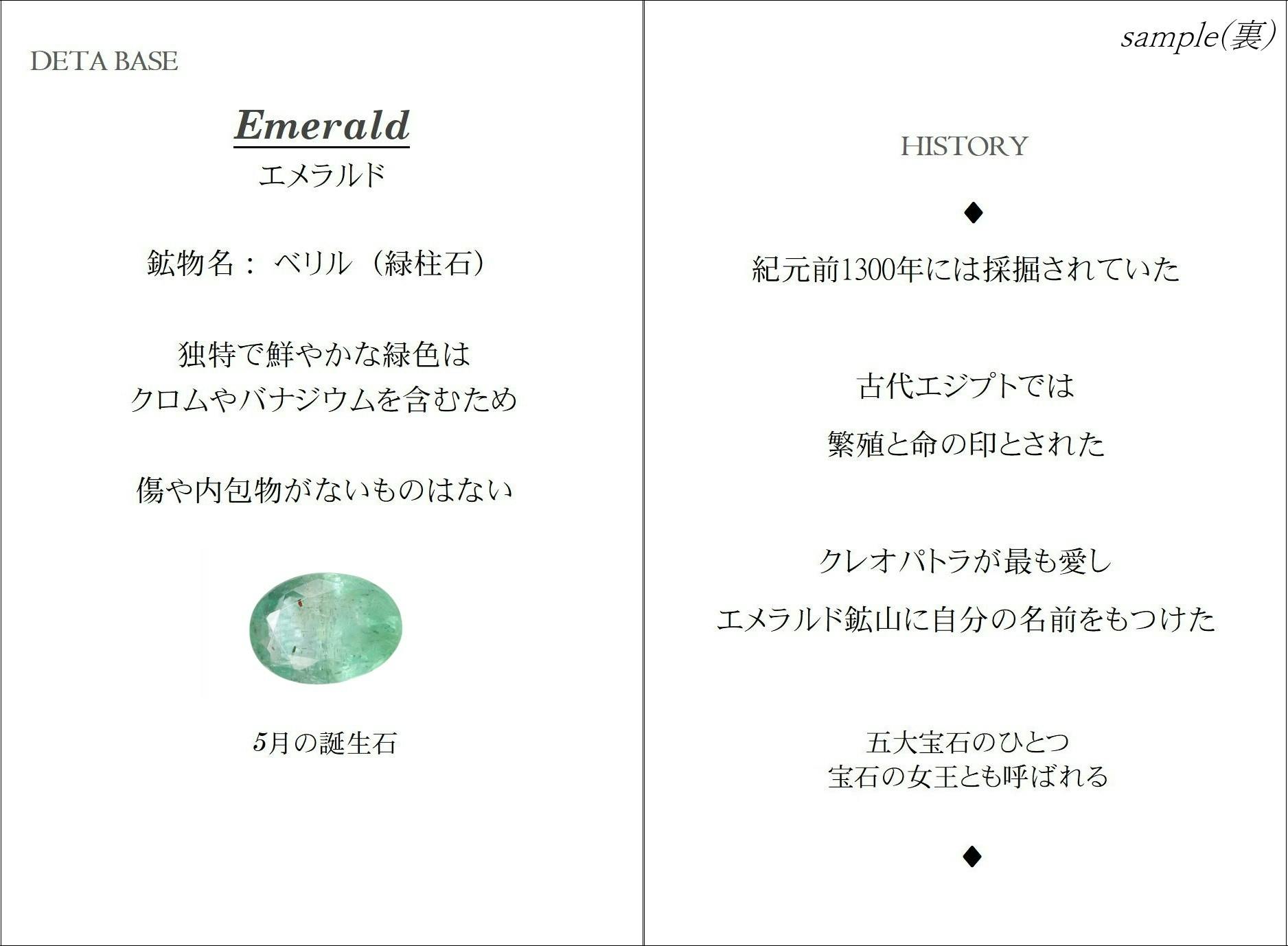 エメラルドは五大宝石のひとつで、宝石の女王とも呼ばれます。5月の誕生石とされたのは、鮮やかな新緑のイメージと重なるためであると言われています。