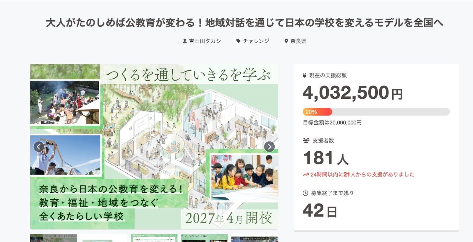目標金額2000万円。残り42日。目標達成まで15,953,500円と、まだ道のりは険しいですが、最後まで、走りぬきます。