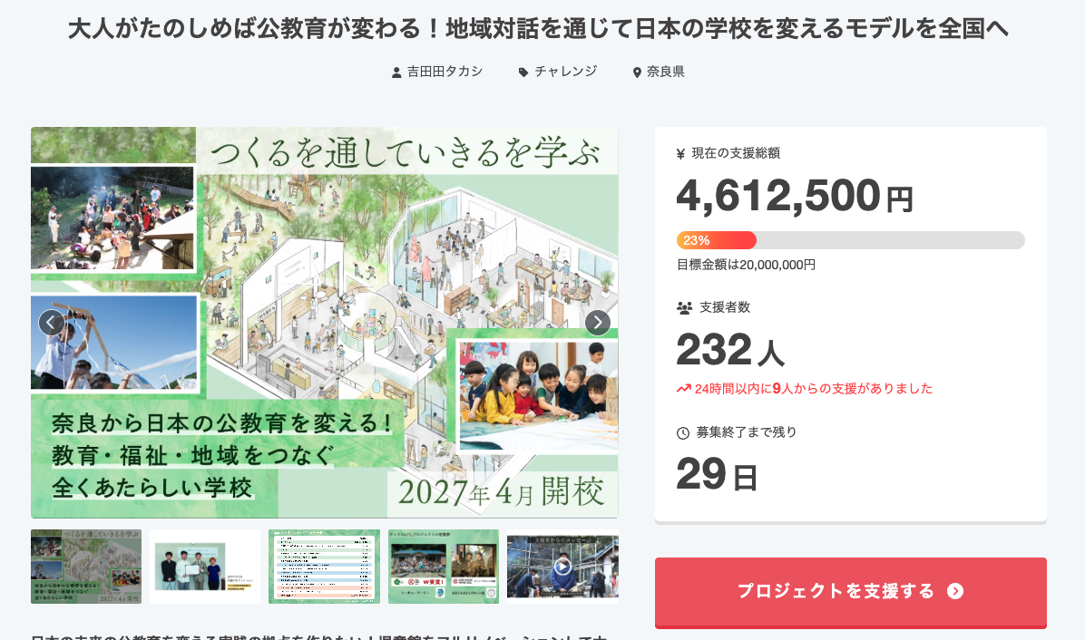 おかげさまでクラファンページの閲覧数が1000名近くにふくれあがり、多くの方にこのチャレンジを知っていただくことができ、支援額も増え、達成率が23%まで到達しました。