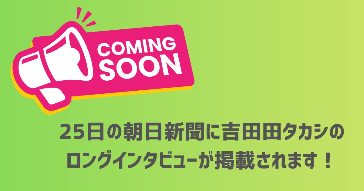 明日25日土曜日の朝日新聞に、吉田田タカシのインタビューがドカーンと大きく載る予定です!!