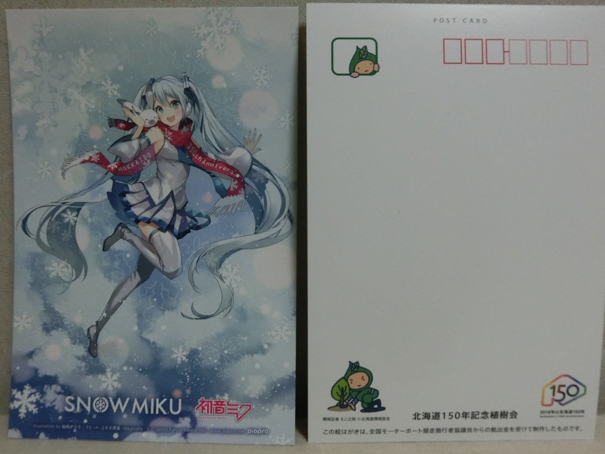 リターン品の「特製 北海道150年雪ミク&環境忍者えこ之助」の絵はがきとクリアファイルが完成しました!