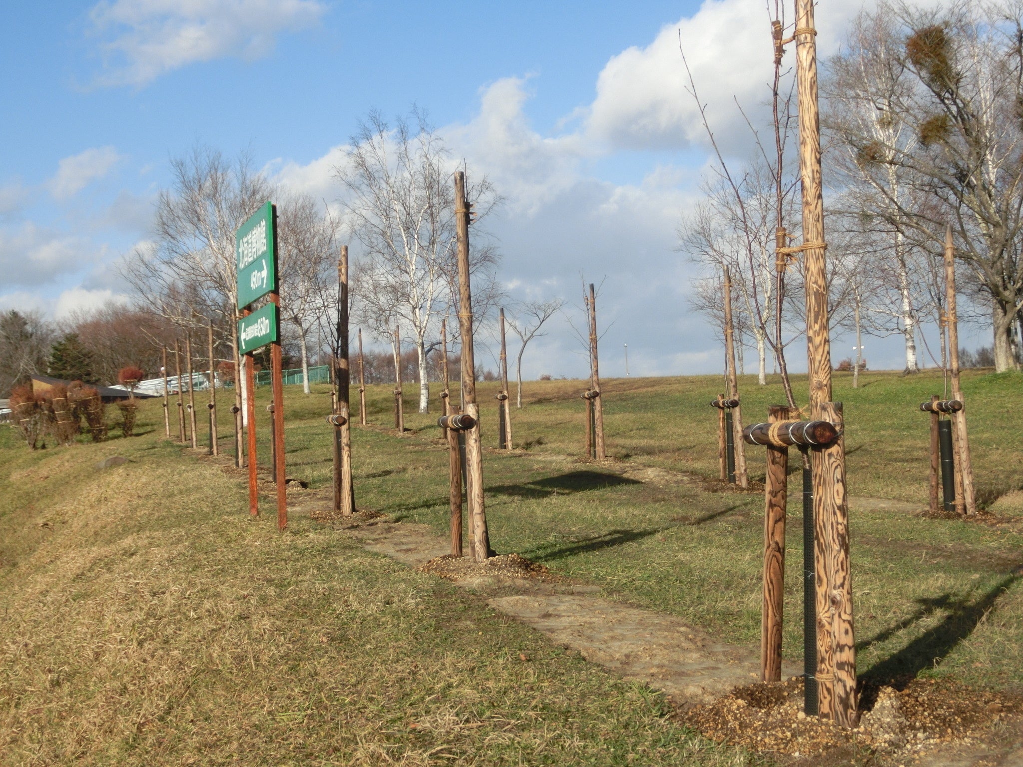 野幌森林公園に、エゾヤマザクラ150本を、無事、植樹することができましたので、