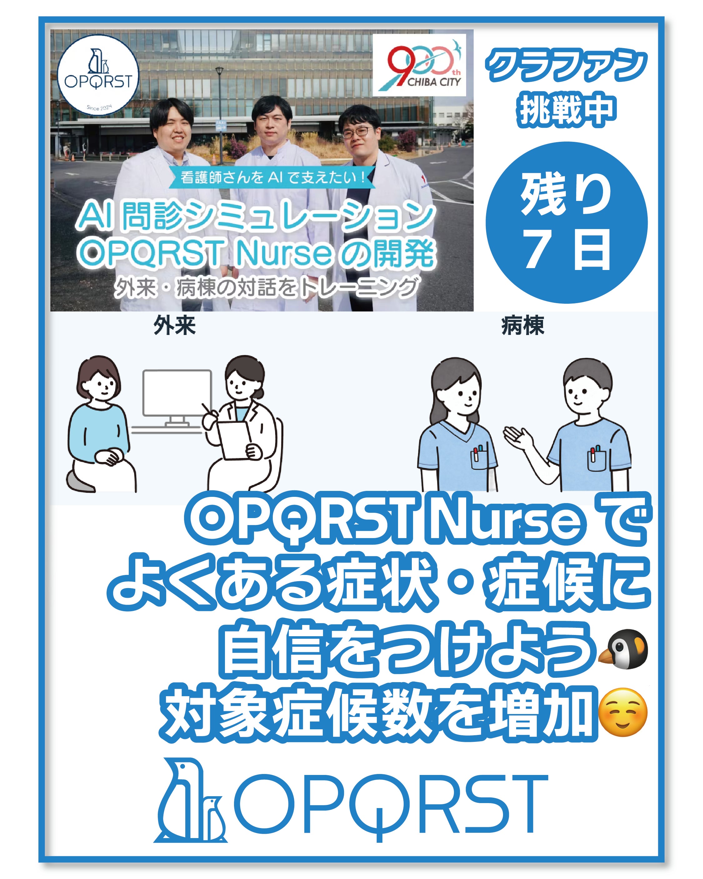 看護学生・看護師さんの問診力を鍛える、AI問診『OPQRST Nurse』の開発を応援しています!URLから支援・シェアをお願いします!