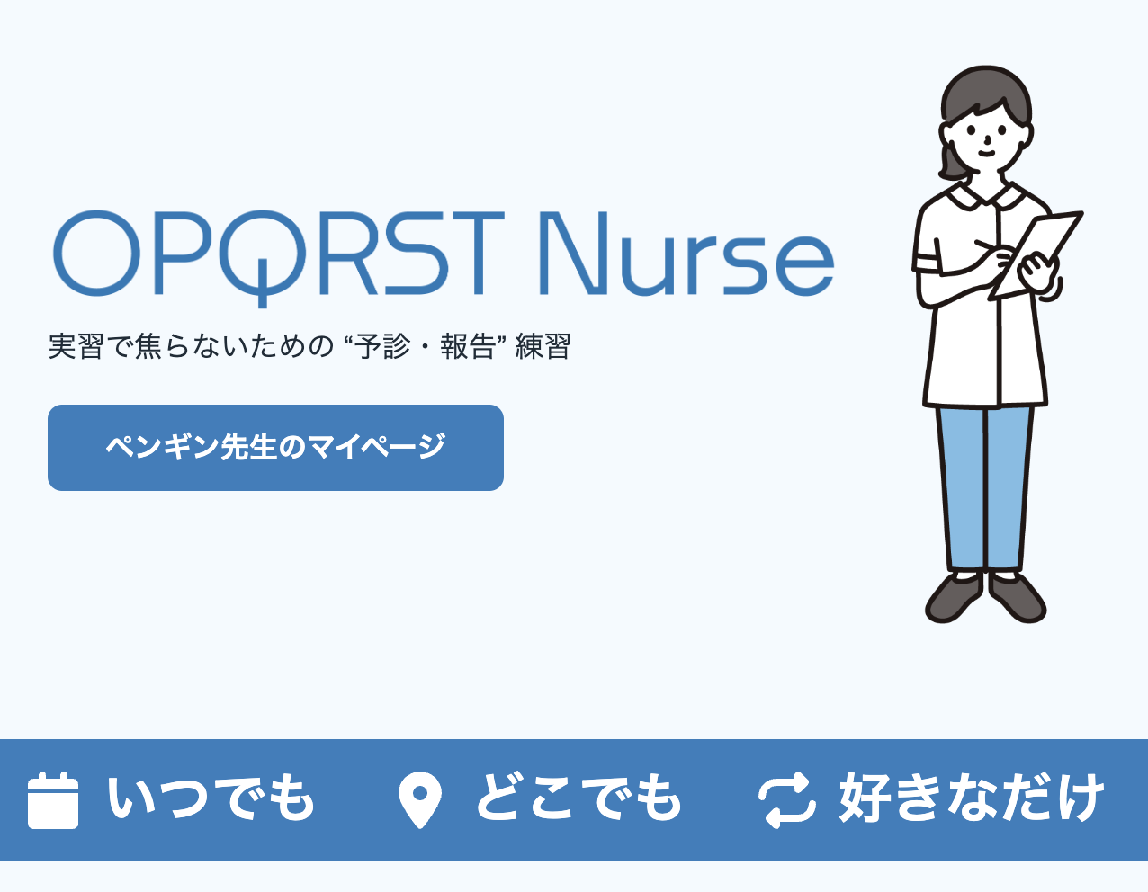 今回のテーマはOPQRSTと同様、”予診・報告”の練習をいつでも・どこでも・すきなだけ です。