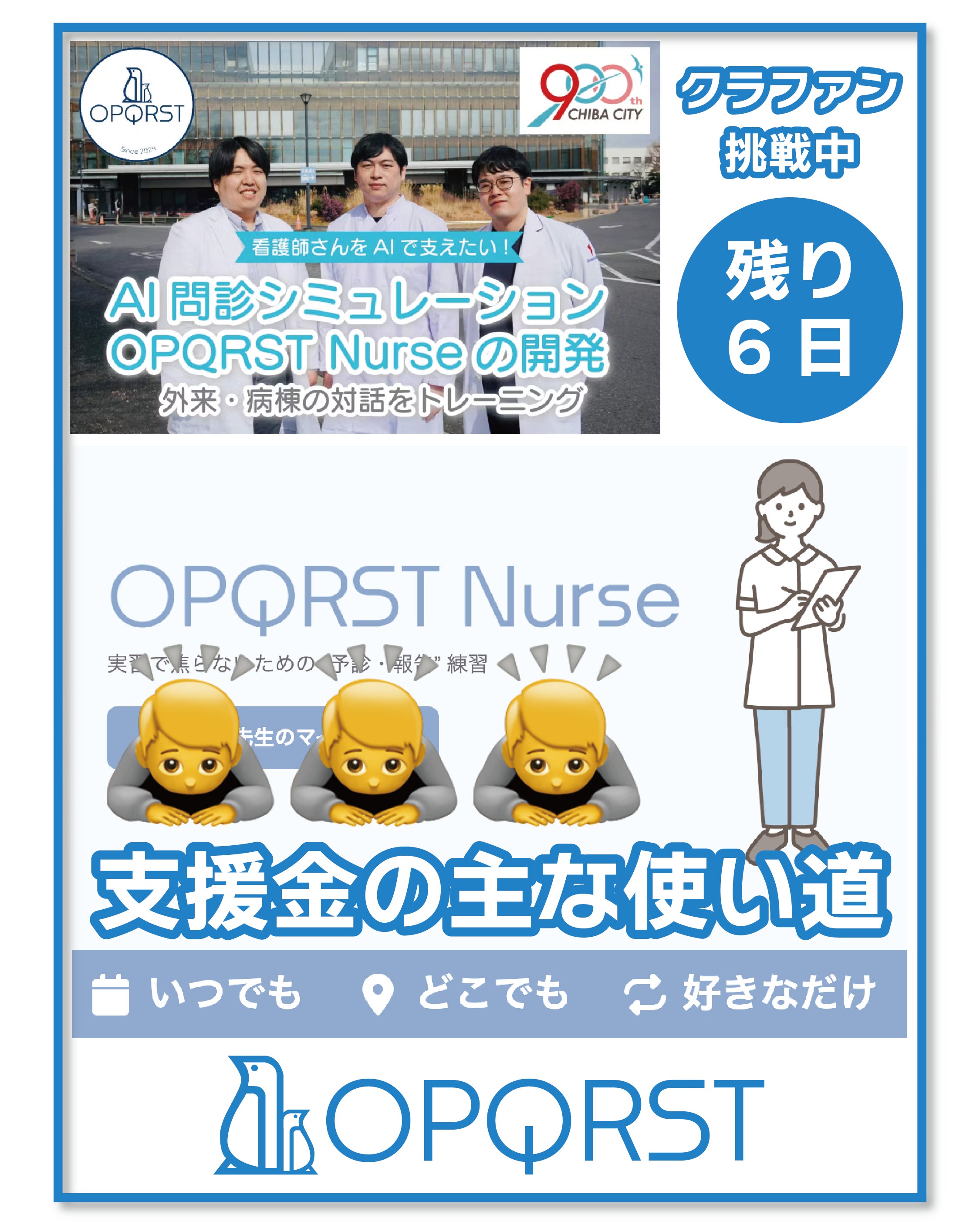看護学生・看護師さんの問診力を鍛える、AI問診『OPQRST Nurse』の開発を応援しています!URLから支援・シェアをお願いします!
