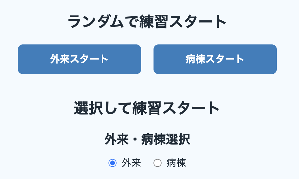 症状を選んで練習するも良し、ランダムですこし挑戦するも良し。その時の希望に応じた練習が可能です。