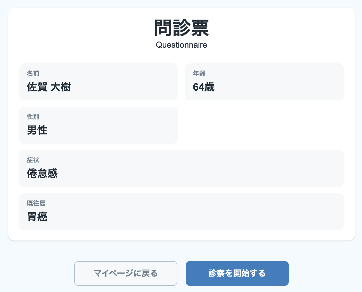 このように情報を集めることができれば予診は完了です。