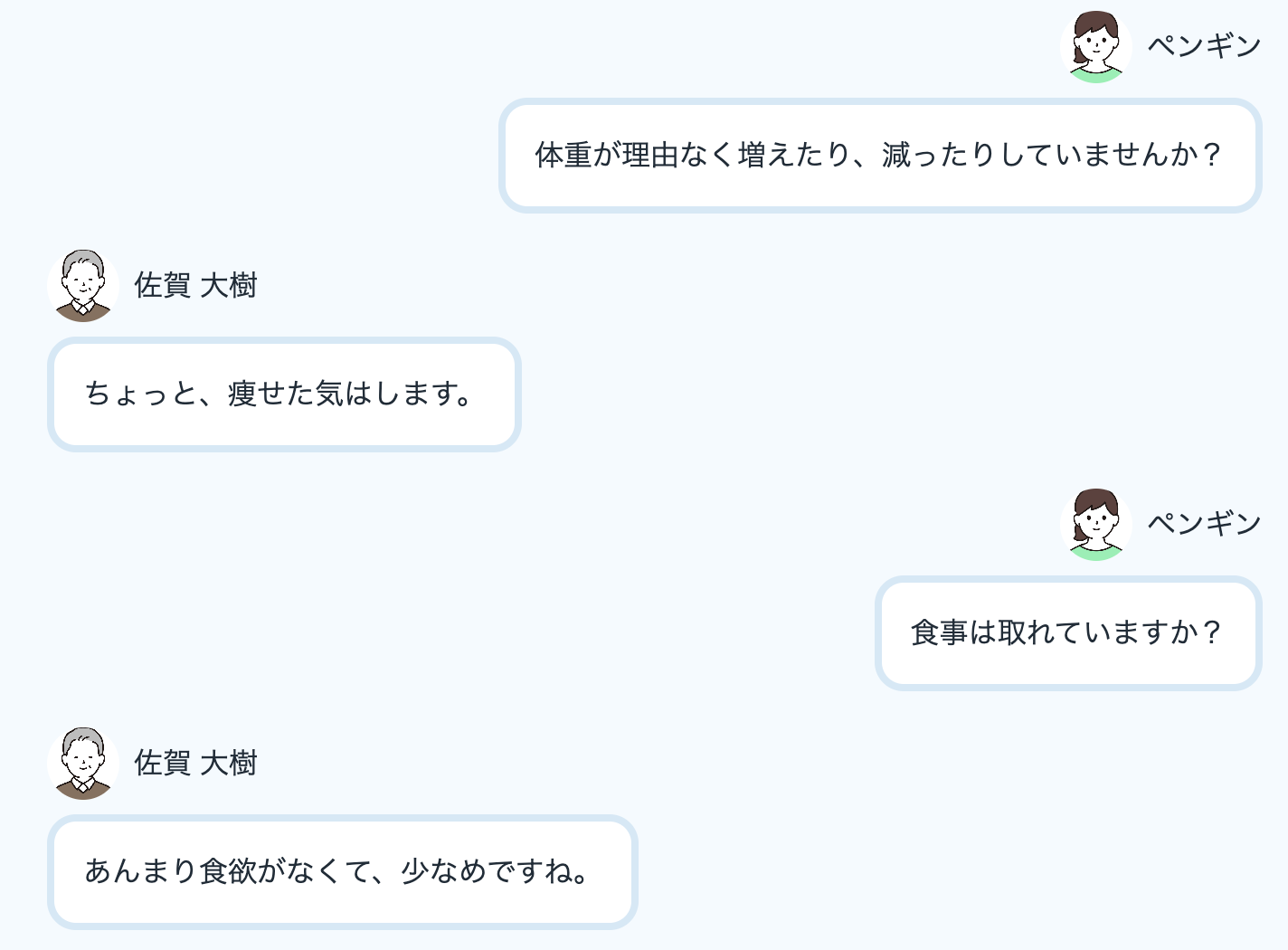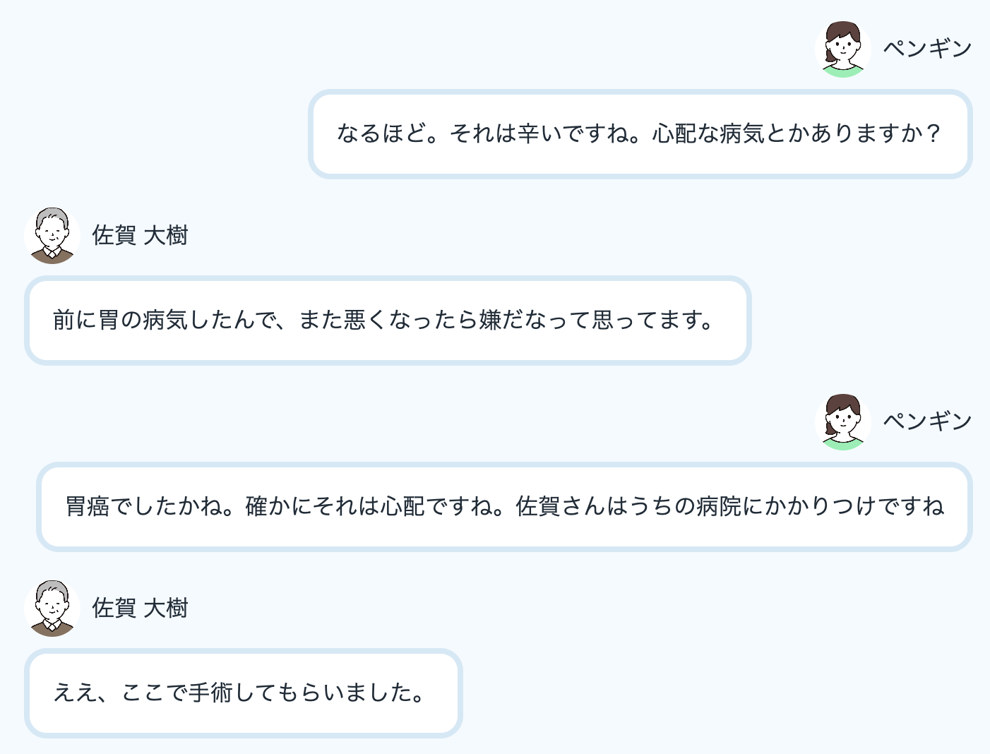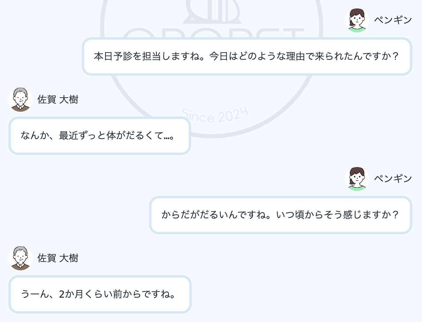 当社のAI模擬患者はどんなことを聞いても一貫性を持って返答してくれます。