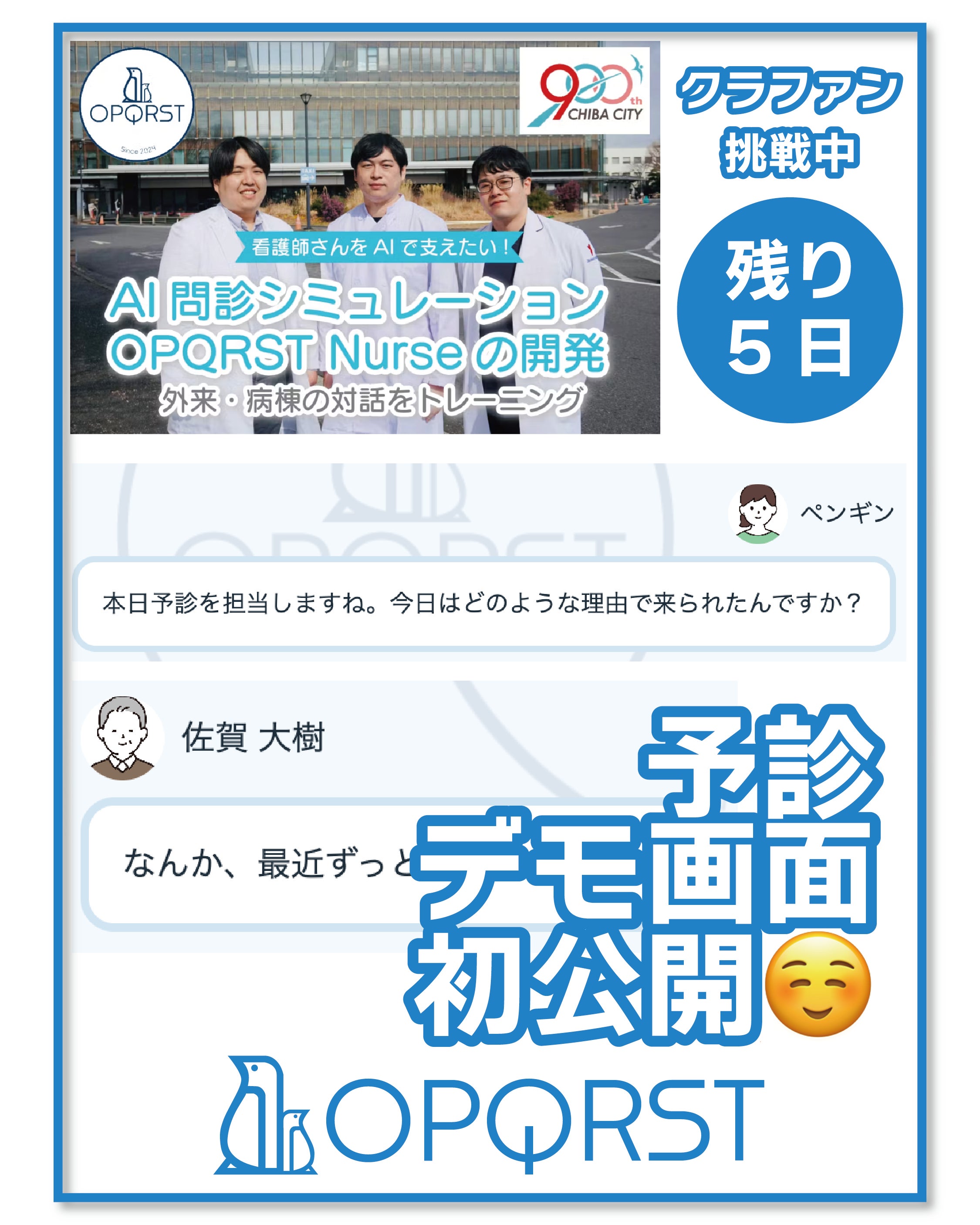 看護学生・看護師さんの問診力を鍛える、AI問診『OPQRST Nurse』の開発を応援しています!URLから支援・シェアをお願いします!