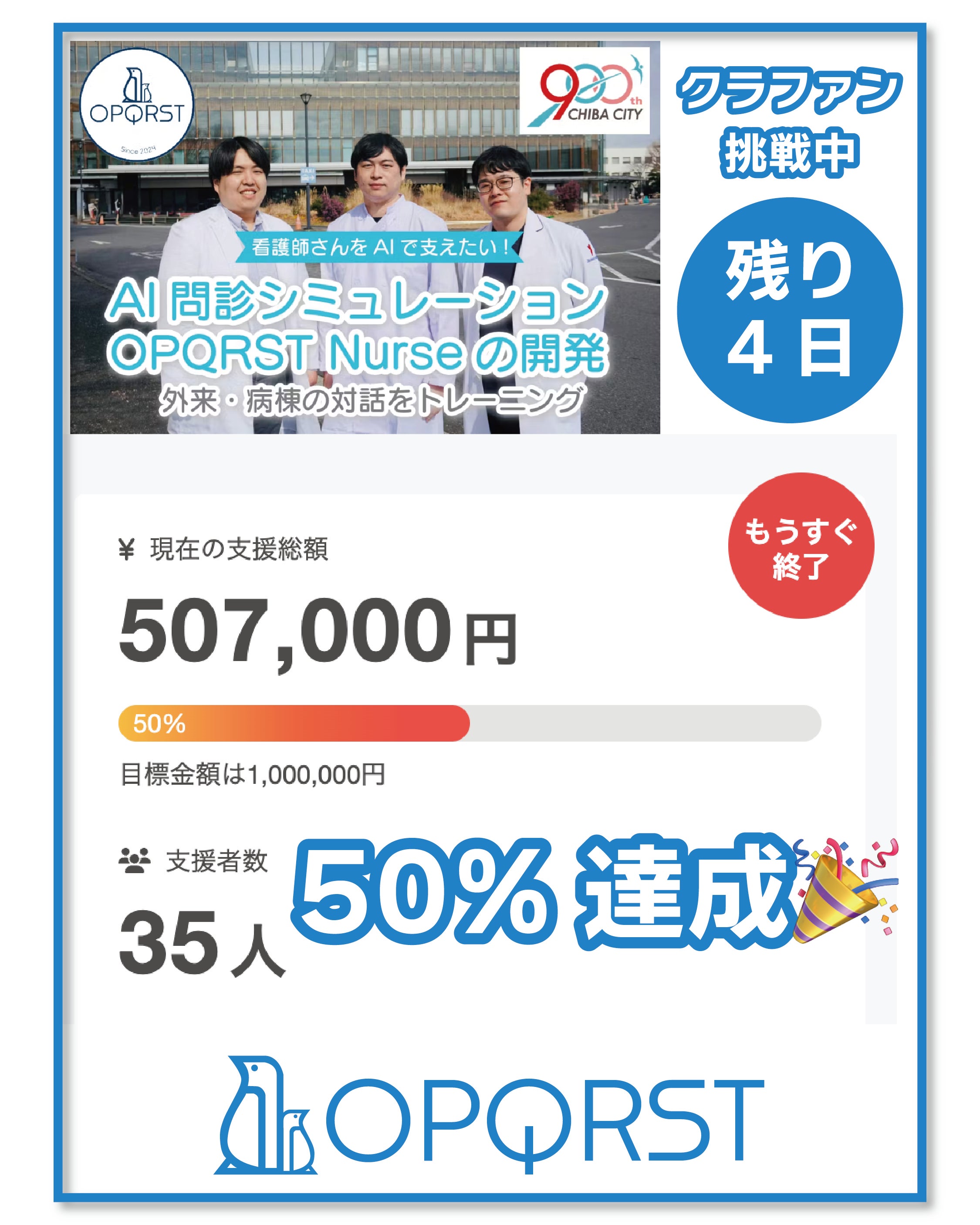 看護学生・看護師さんの問診力を鍛える、AI問診『OPQRST Nurse』の開発を応援しています!URLから支援・シェアをお願いします!