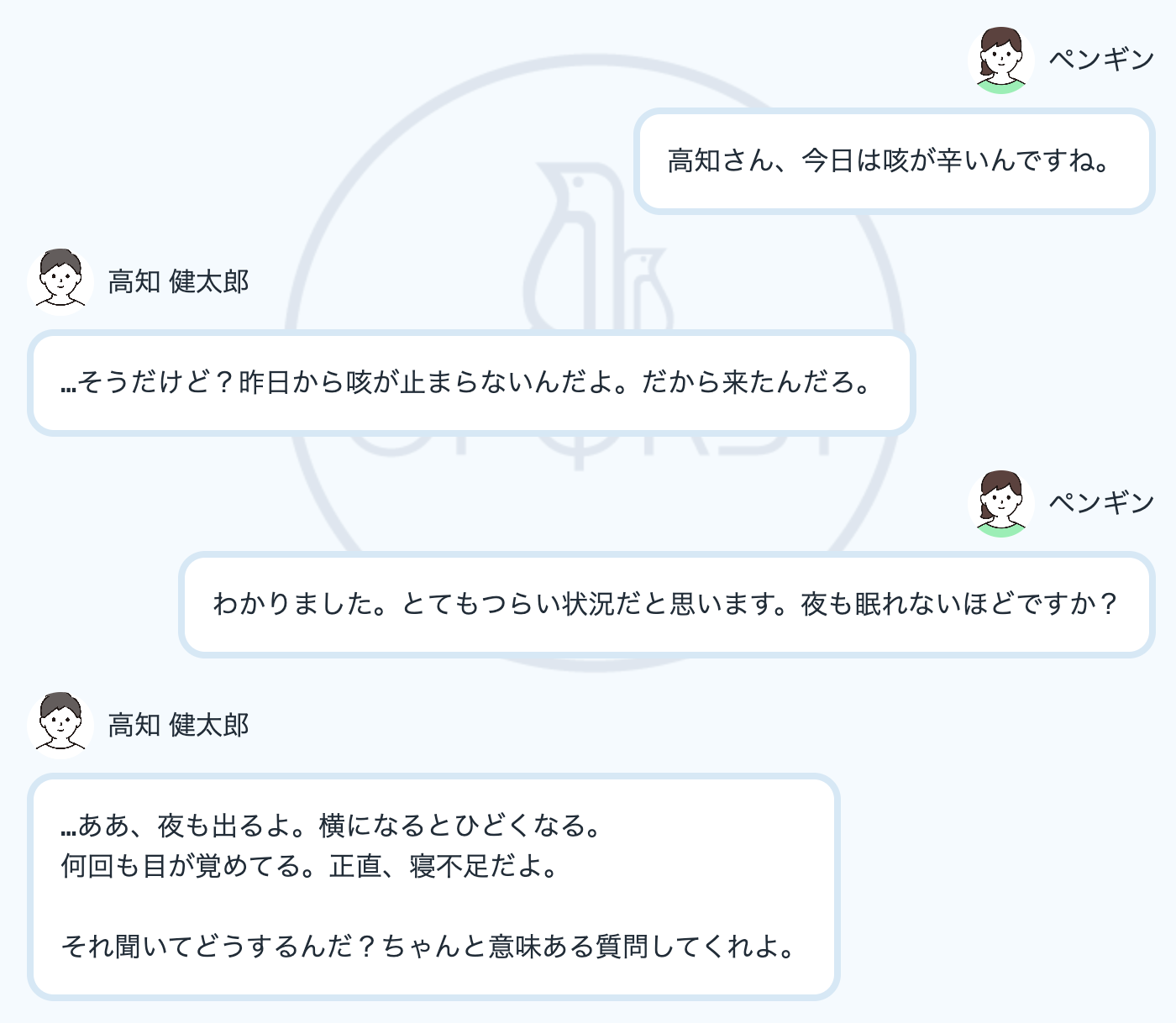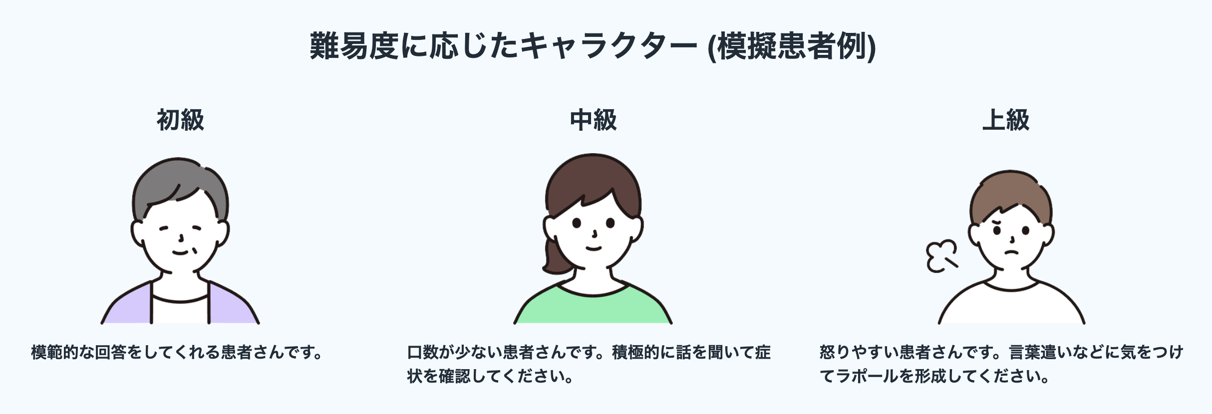開発は着々と進んでおります。今回は外来患者への予診の練習で相手となる「AI模擬患者」のキャラクターを追加しました。