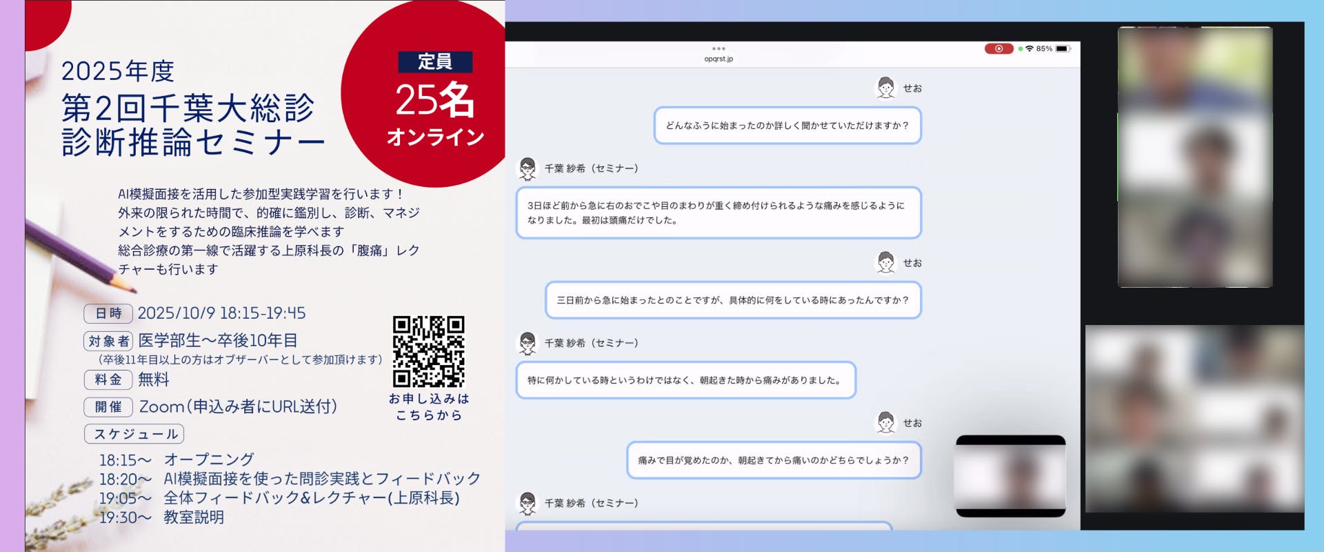 私たちは、2025年8月「医療者の問診力を高め、患者さんが安心できる医療を提供する」を達成するために、医学生・初期研修医むけのAI問診シミュレーション『OPQRST』を開発しました!