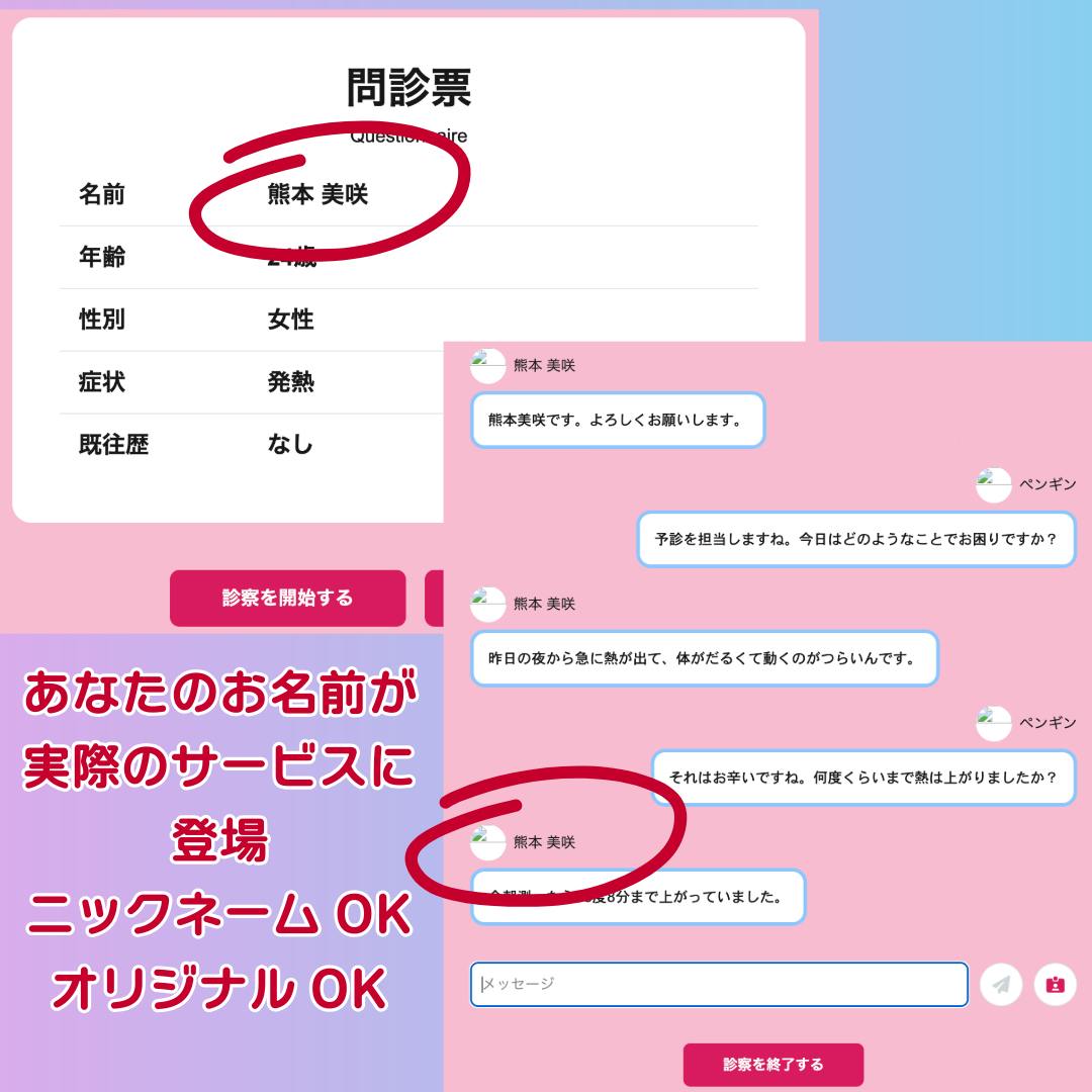 『OPQRST Nurse』で使用するAI模擬患者・AI医療者にあなたのお名前を使用できます。