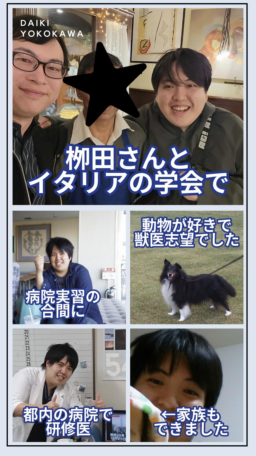 チームの一人、横川は東京都で生まれました。もともと動物が好きだったので獣医を志望したのですがハードルが高く、受験勉強を1年多くしたことで、医師として働くことに興味が湧きました。