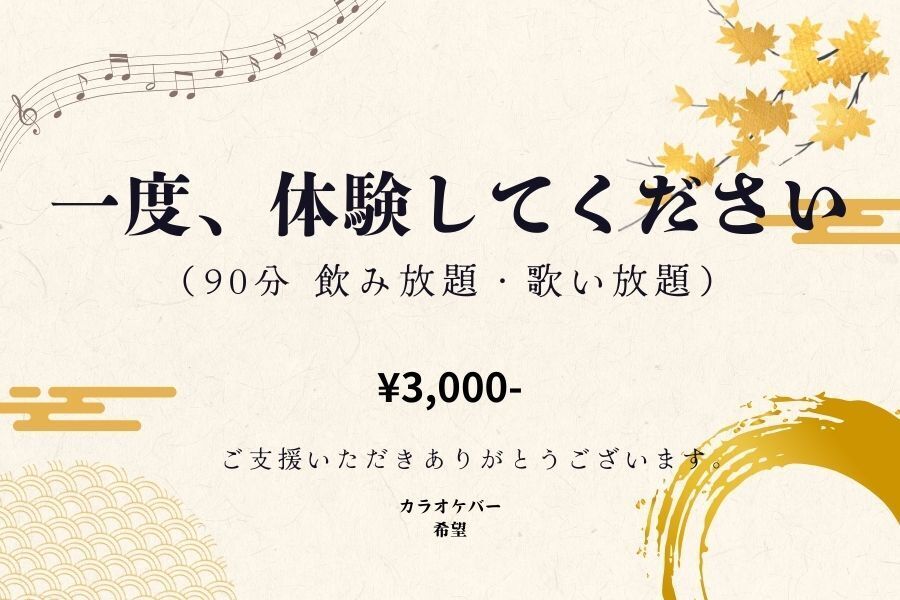 90分 飲み放題・歌い放題 × 1回(通常3,000円)