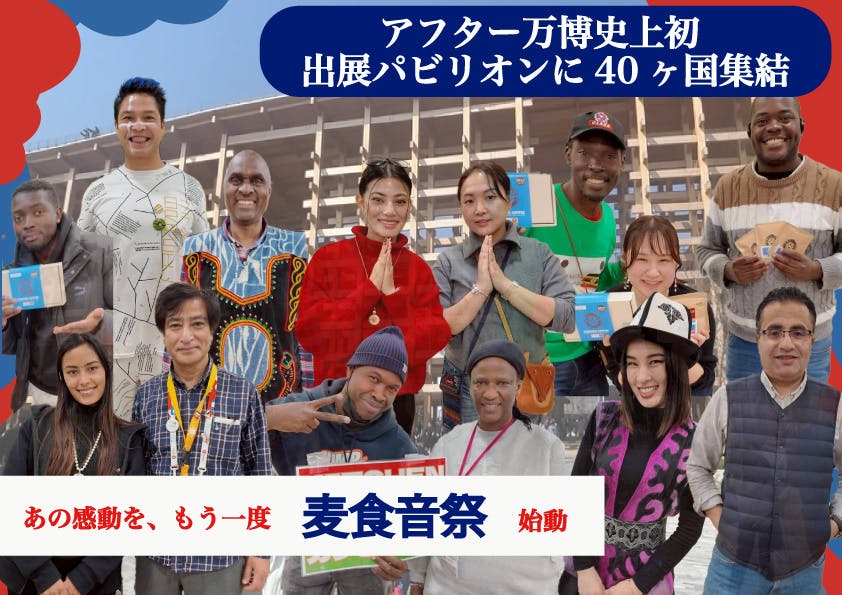 あの感動を胸に、今度は私たちの手で新しい交流の物語を紡いでいきませんか。皆さまの温かいご支援が、国境を越えた友情と理解の架け橋となり、子どもたちの未来を明るく照らす光となることを心から信じています。『麦食音祭2026~アフター万博~』で、再び世界とつながる喜びを分かち合いましょう。