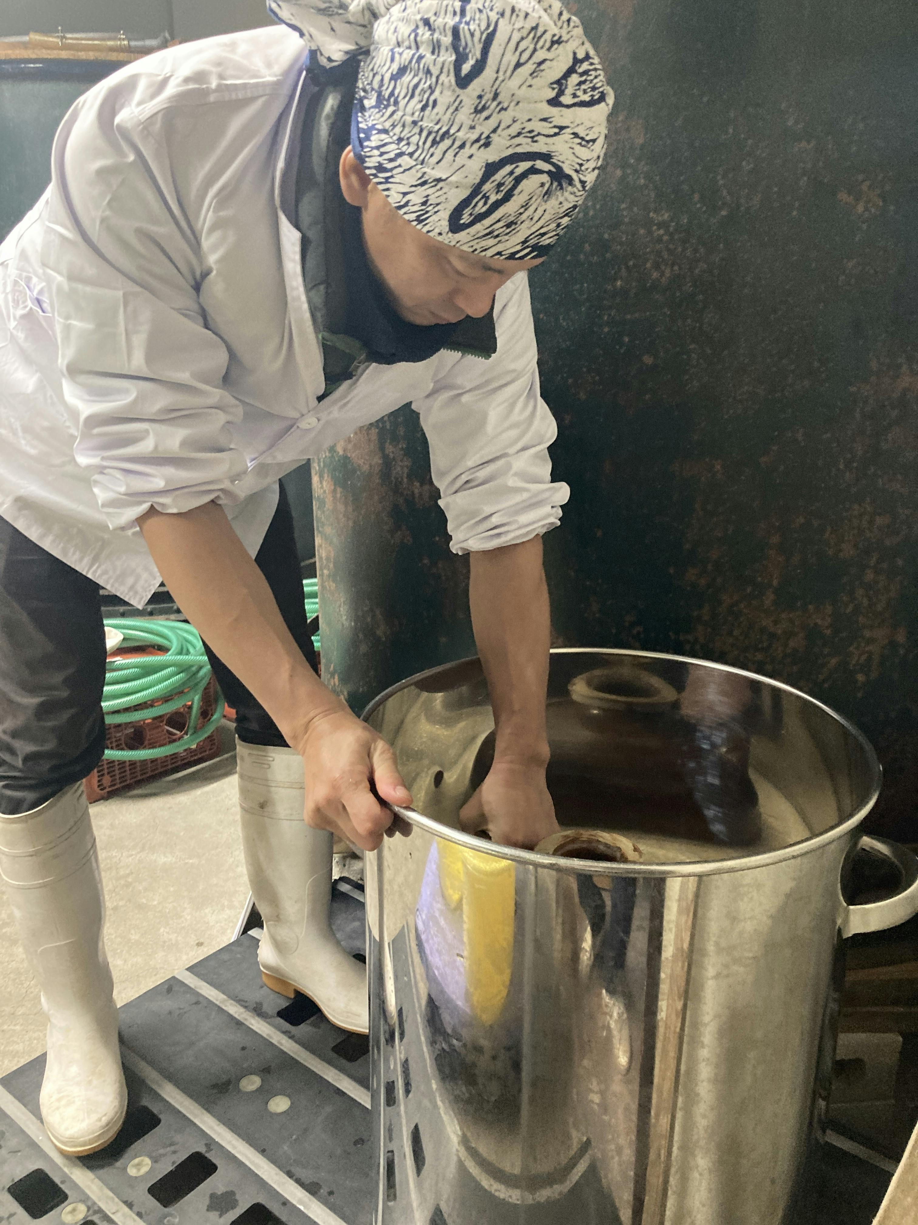 現在、最初の工程である「酒母(酛)」を造っています。東薫酒造の一角をお借りして小さい