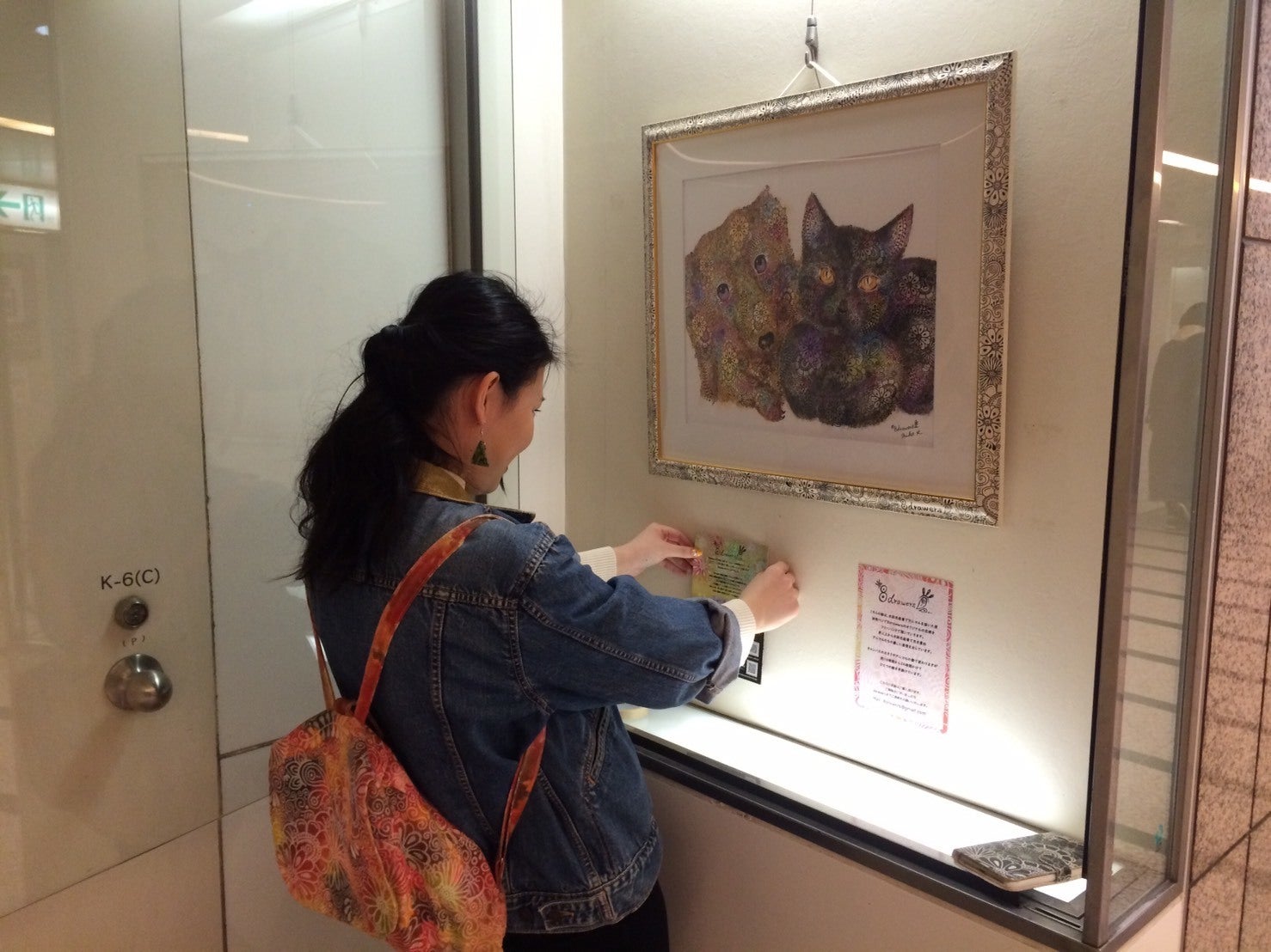 福岡三越横のアートギャラリーにて作品展示をさせて頂きました!通路に展示をしたため、たくさんの方にご覧いただけてすごく幸せでした!こちらはアート作品(絵)のみの展示です。※こちらの写真は準備中の様子です!