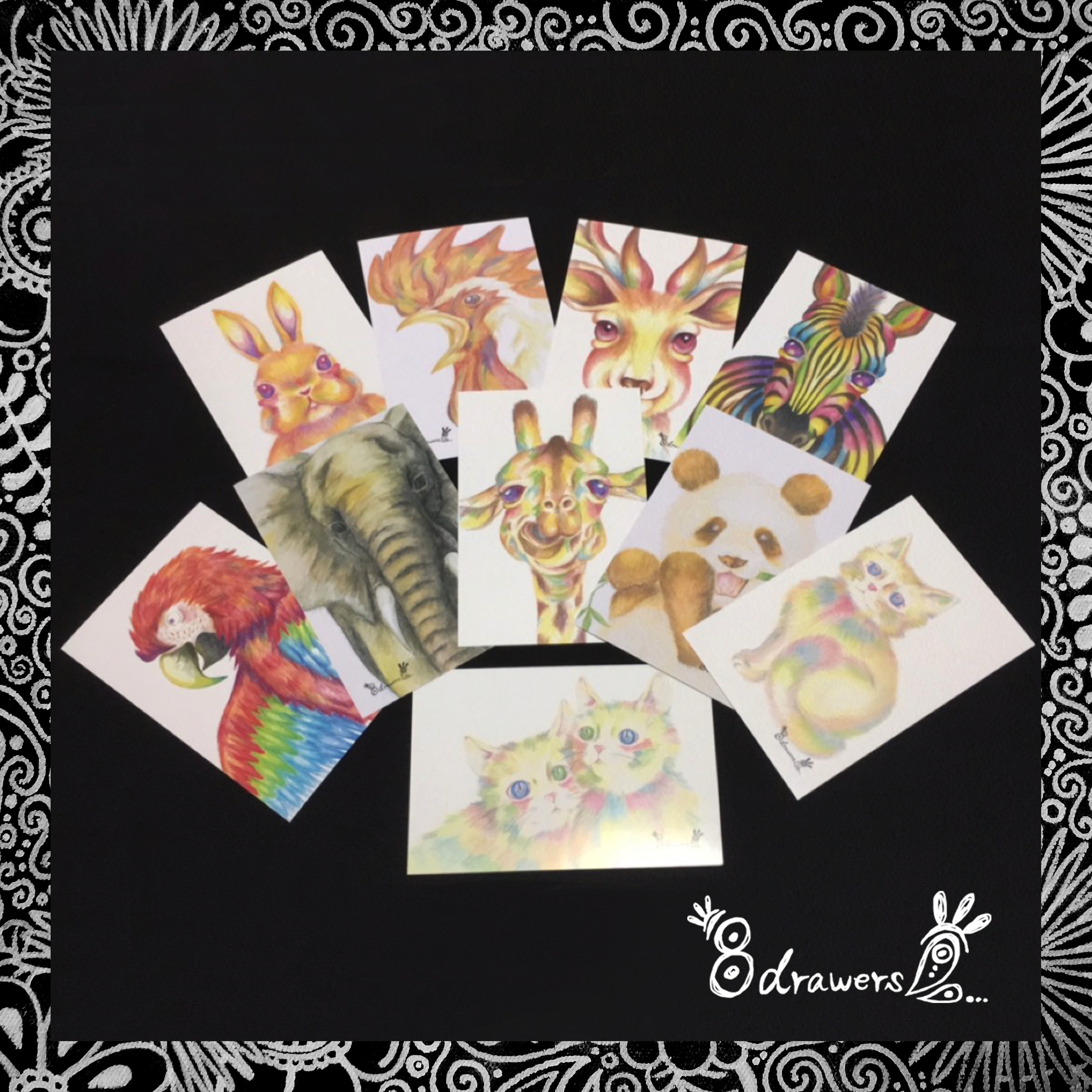 その中で、水彩色鉛筆で描いたアニマルたちをグッズとしてポストカードを作りました!