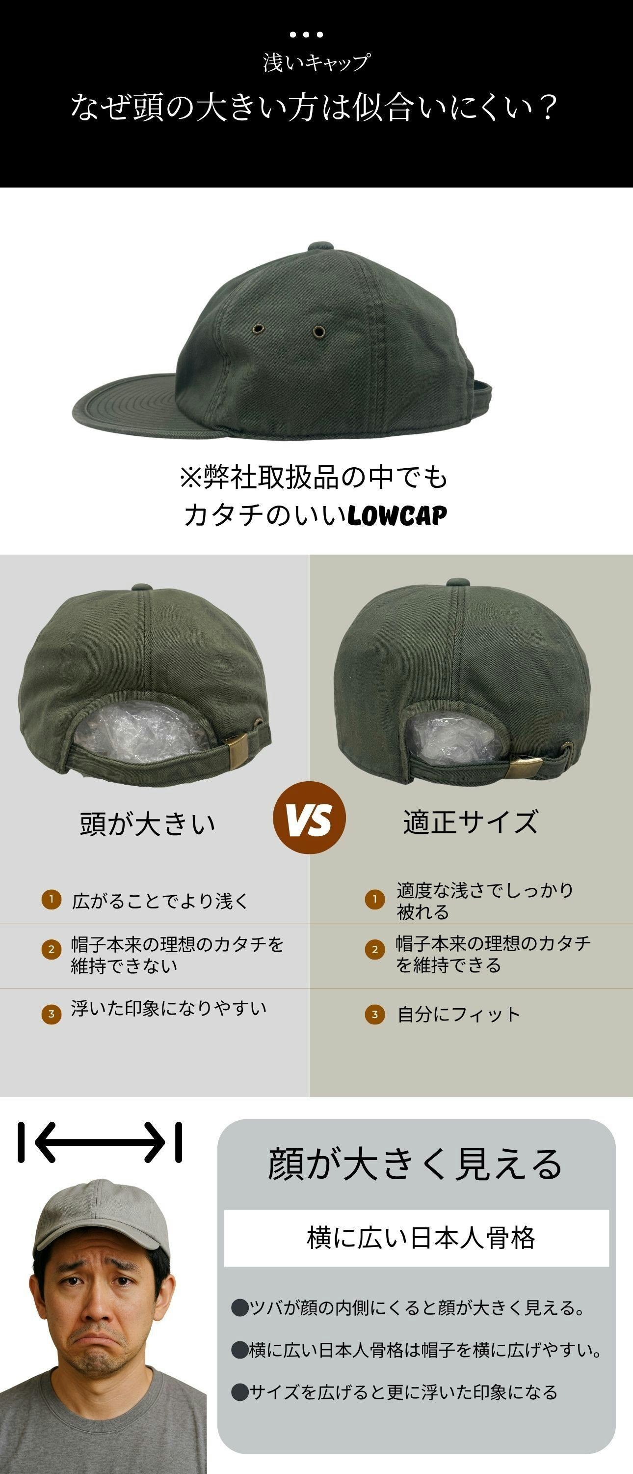 頭が大きくても似合ってしまうローキャップ(浅い帽子)!匠の11枚剥構造