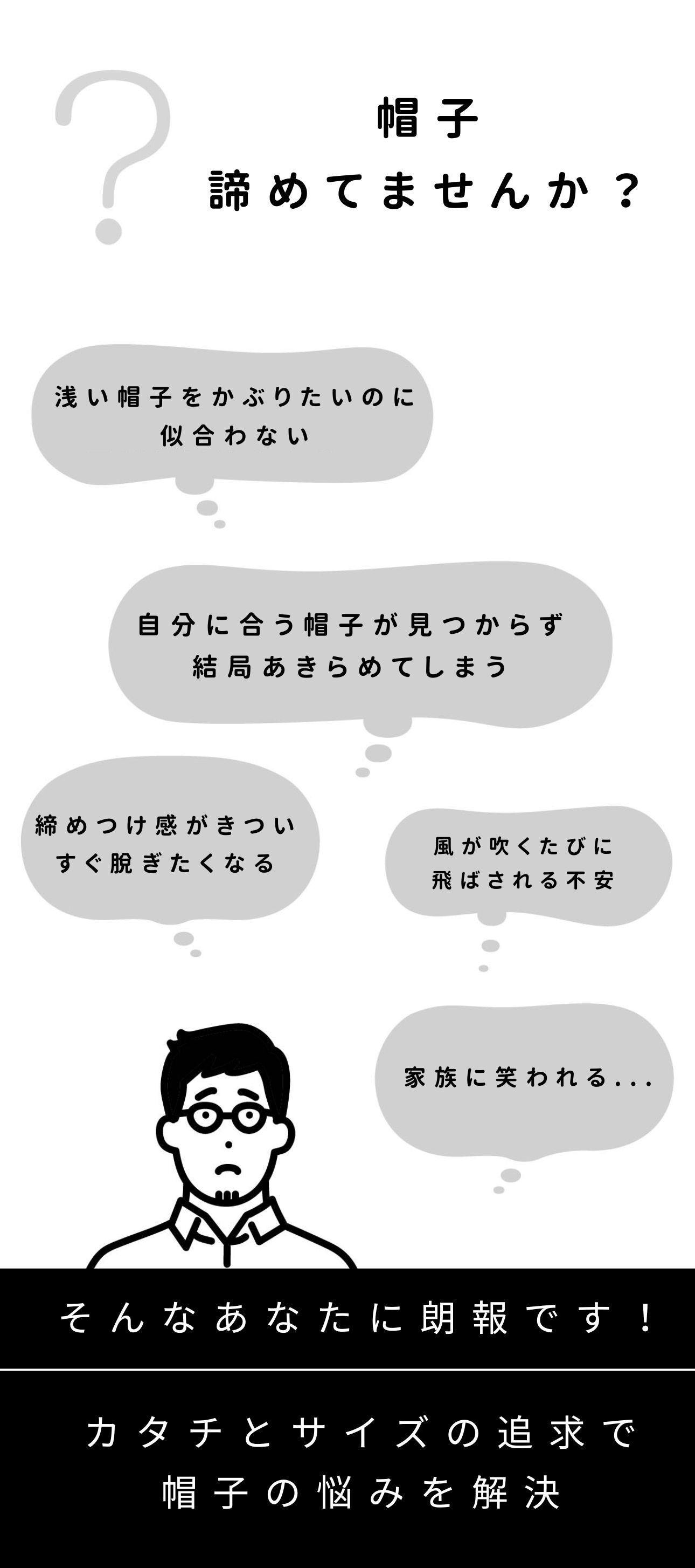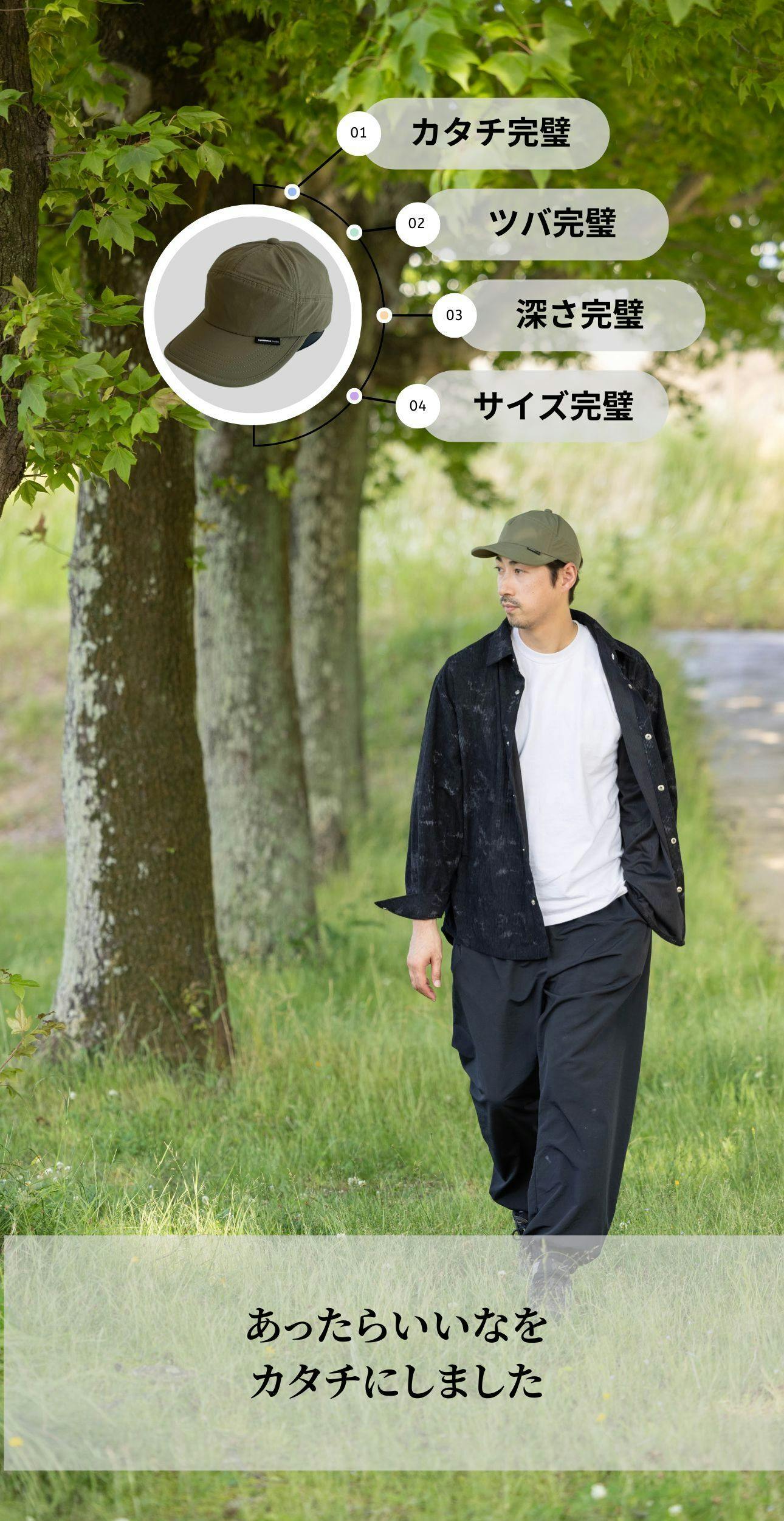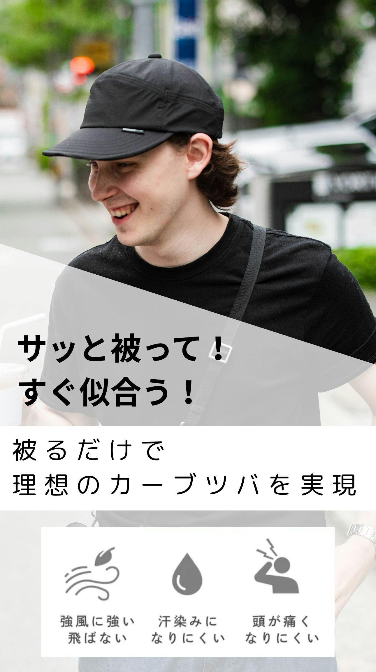 「浅いキャップが好きなのに、どうしても似合わない…」浅いキャップが好きでも似合わなかった方へ。頭の大きさに悩む声から生まれた快適設計キャップ。風に強く、痛くなりにくく、汗ジミも目立ちにくい。畳めて撥水、被ったまま調整可能。4サイズ展開で、ついに「似合う」に出会える帽子革命。