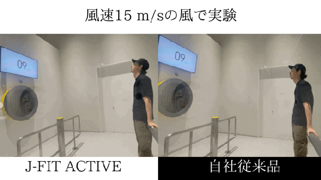 風を受けやすいように少し上を向いて実験してみました。