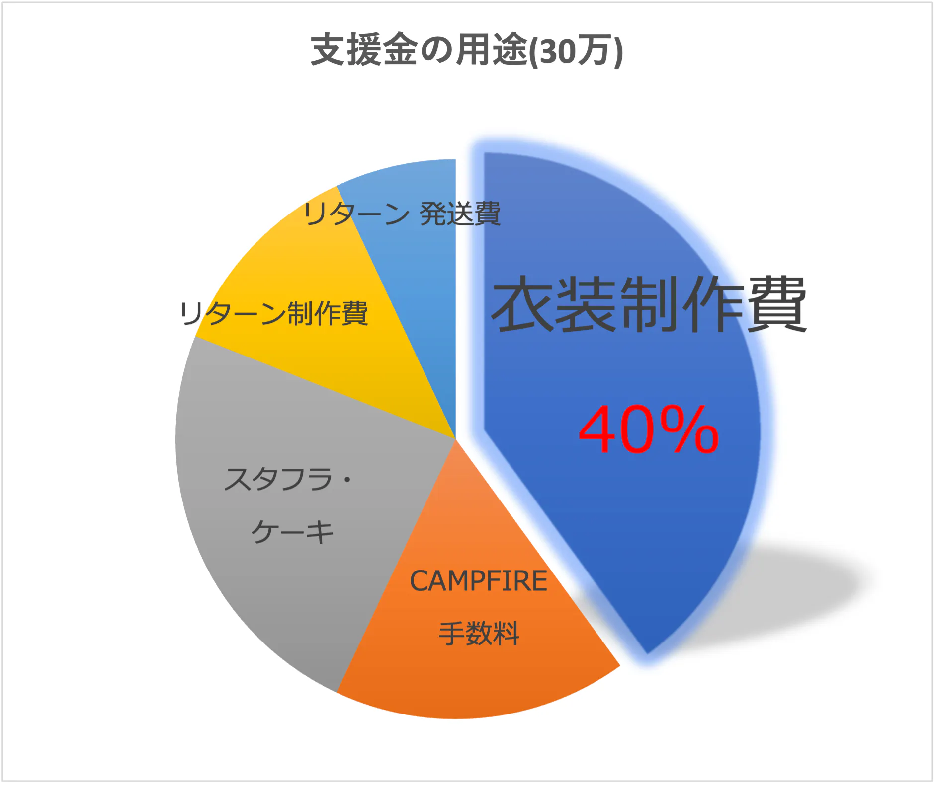 皆様から頂きました支援金につきましてはリターン品の制作費用にくわえ生誕衣装の制作、フラワースタンド等の費用に充てさせて頂きます。