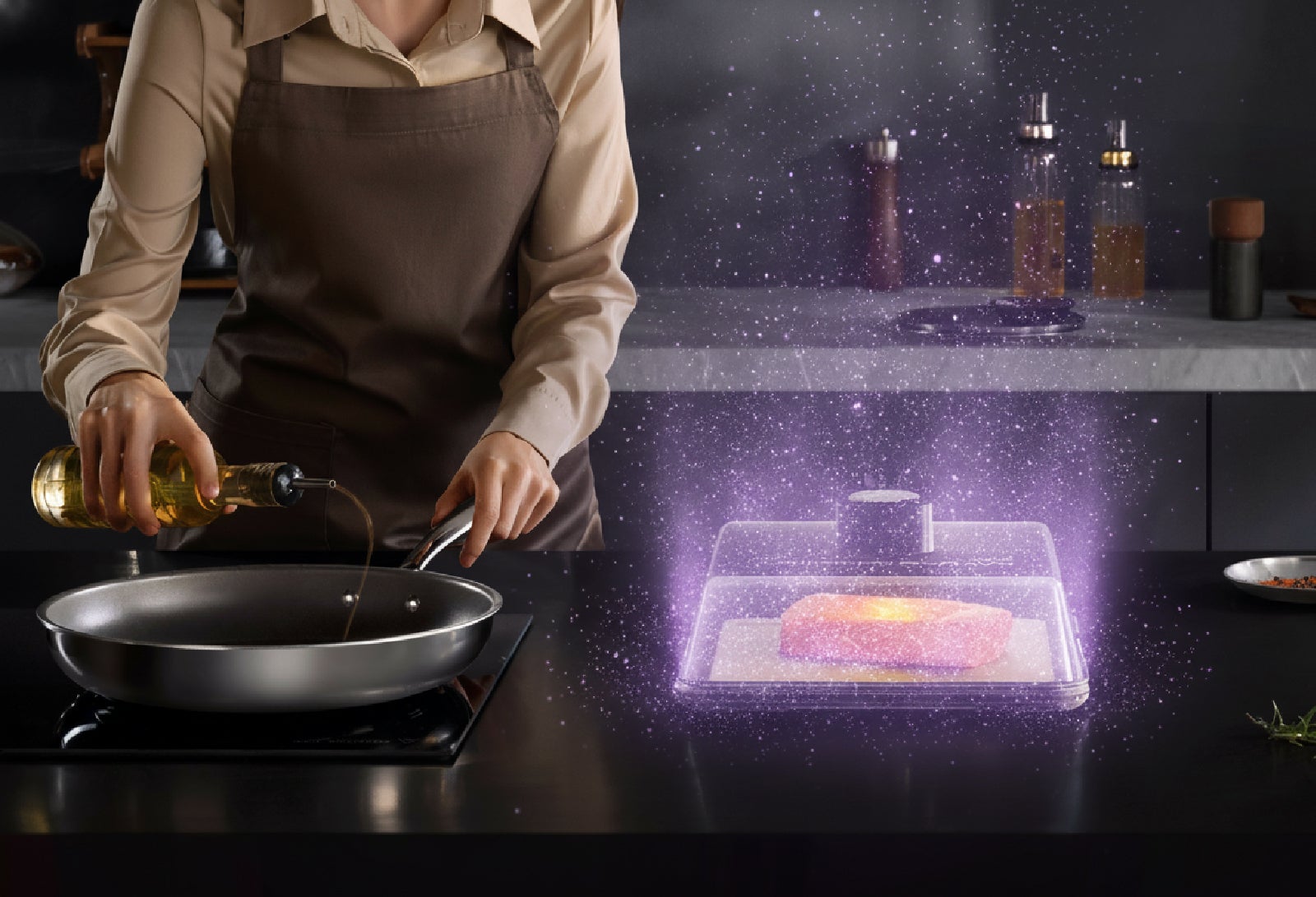 A:朝食のパンや夕食のステーキなど、様々な冷凍食品を素早く解凍し、食品の栄養とジューシーさを効果的に保てる便利なキッチンツールです。また、UV除菌とプラズマエアフィールド技術を搭載し、酸をさらに低減、肉の臭いを除去して細菌やウイルスなどを99.9%除去します。