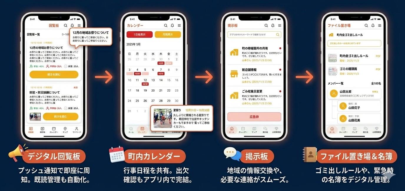 ・回覧板やお知らせの配信