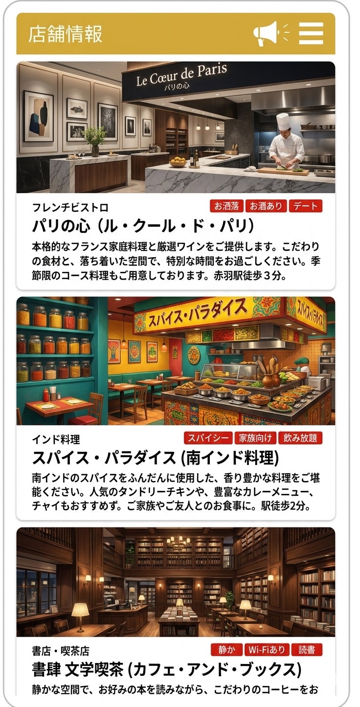 例えば、カフェや美容院、居酒屋、歯科医院、ペットショップなど、地域のお店が広告を出すことで、アプリの運営が成り立つ仕組みです。