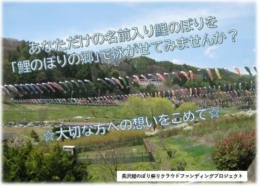 ・あなたのご希望の名前入り鯉のぼりを長沢の空に泳がせます!