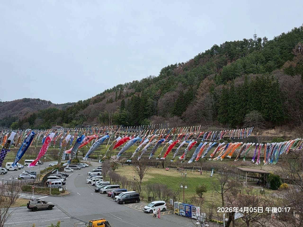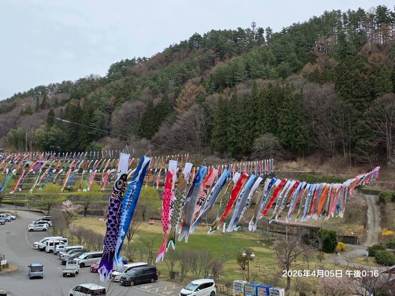 ありますが、5月4日に再度ワイヤーを下げて5月5日には完全な状態で鯉のぼり祭りを