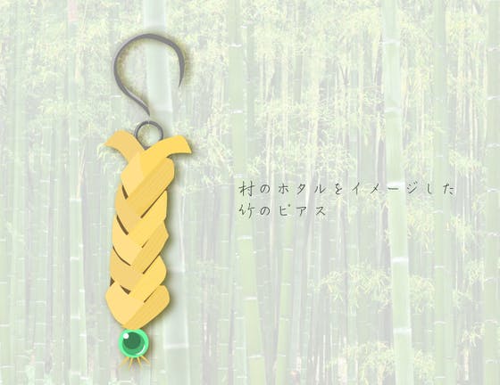 こちら、あの村の象徴である竹とホタルをかたどったピアスとなっております。