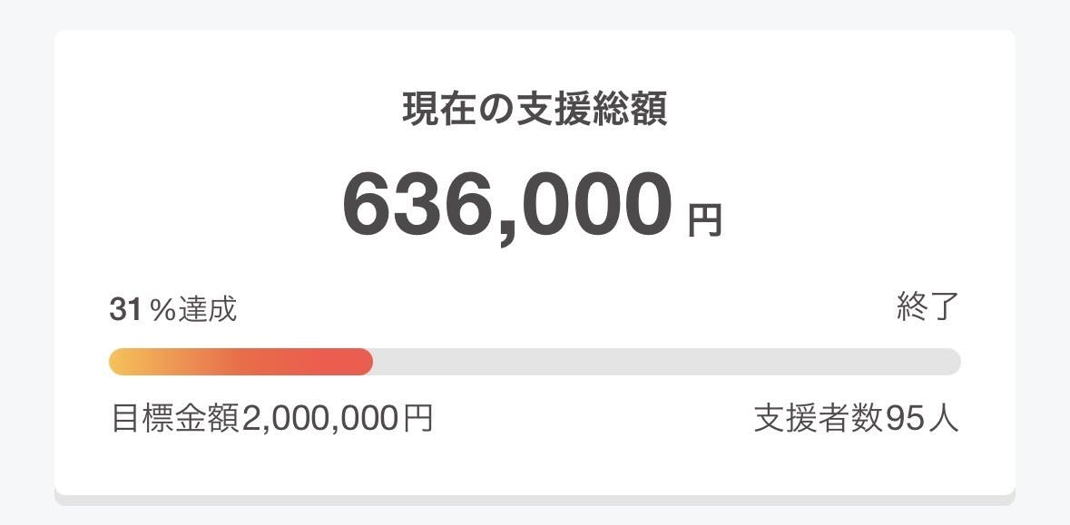たくさんの方々に応援していただき、95人もの方から、636,000円ものご支援をいただくことができました、本当にありがとうございます!