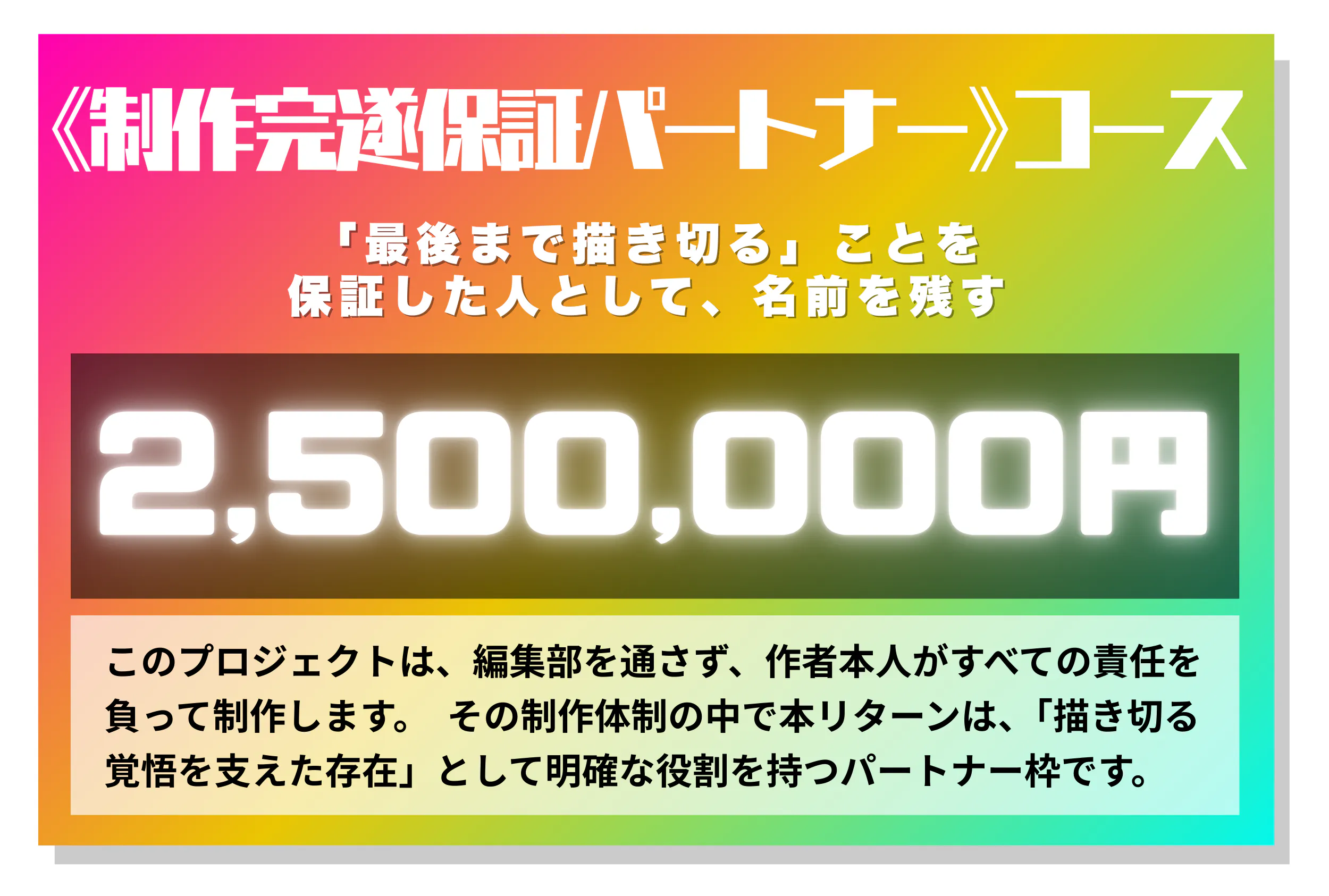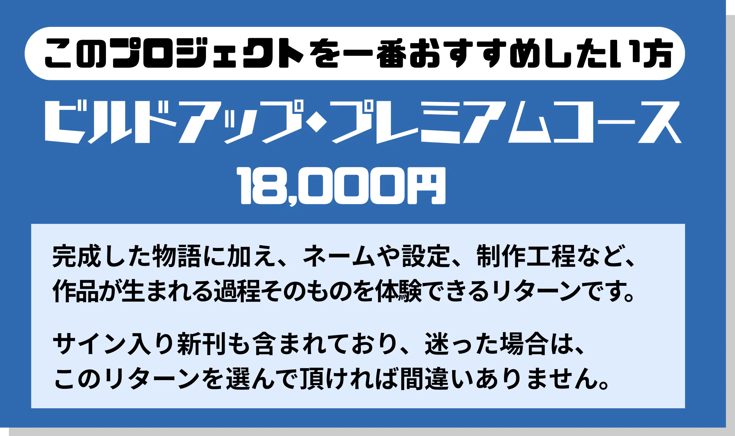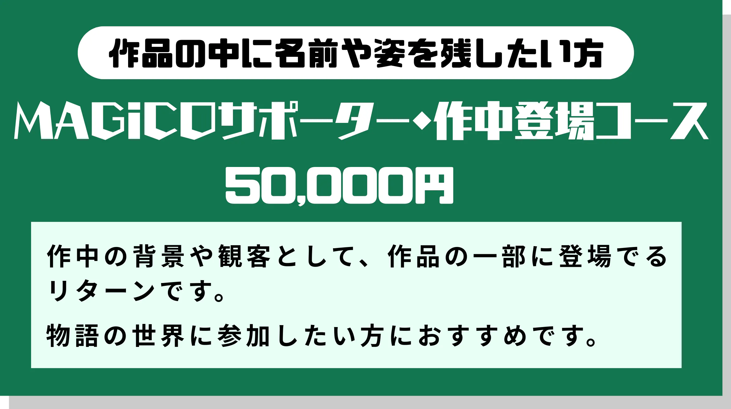 「誰かがやる」では、成立しません。この企画は、すでに完成が決まっている作品の予約販売ではありません。誰か一人、あるいは数人の決断がなければ、このプロジェクトは成立しないという前提で設計しています。もしこの企画に意味を感じていただけたなら、その判断そのものが、この物語を完成へ近づけます。