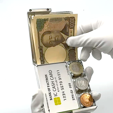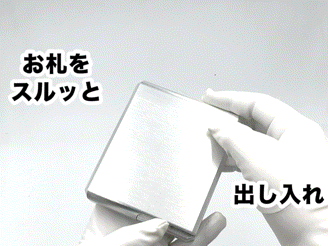 スキミング防止。お札を折らずにスルッと出し入れ。金属製のお財布です。