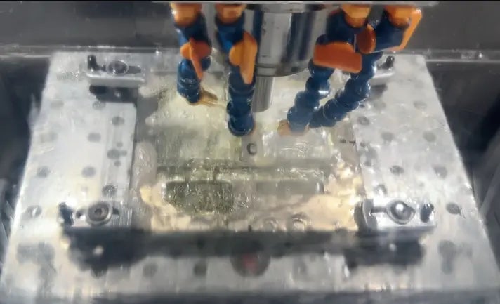 削り出し加工とは、一般的にはマシニングセンターと言われる工作機械で、金属の塊を少しずつ削って形作る製造方法です。