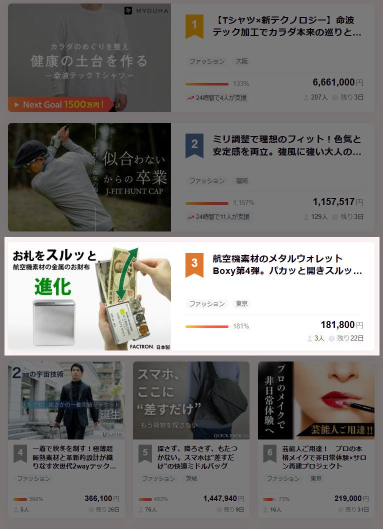 メタルウォレットBoxy2はファッションカテゴリで3位になりました!
