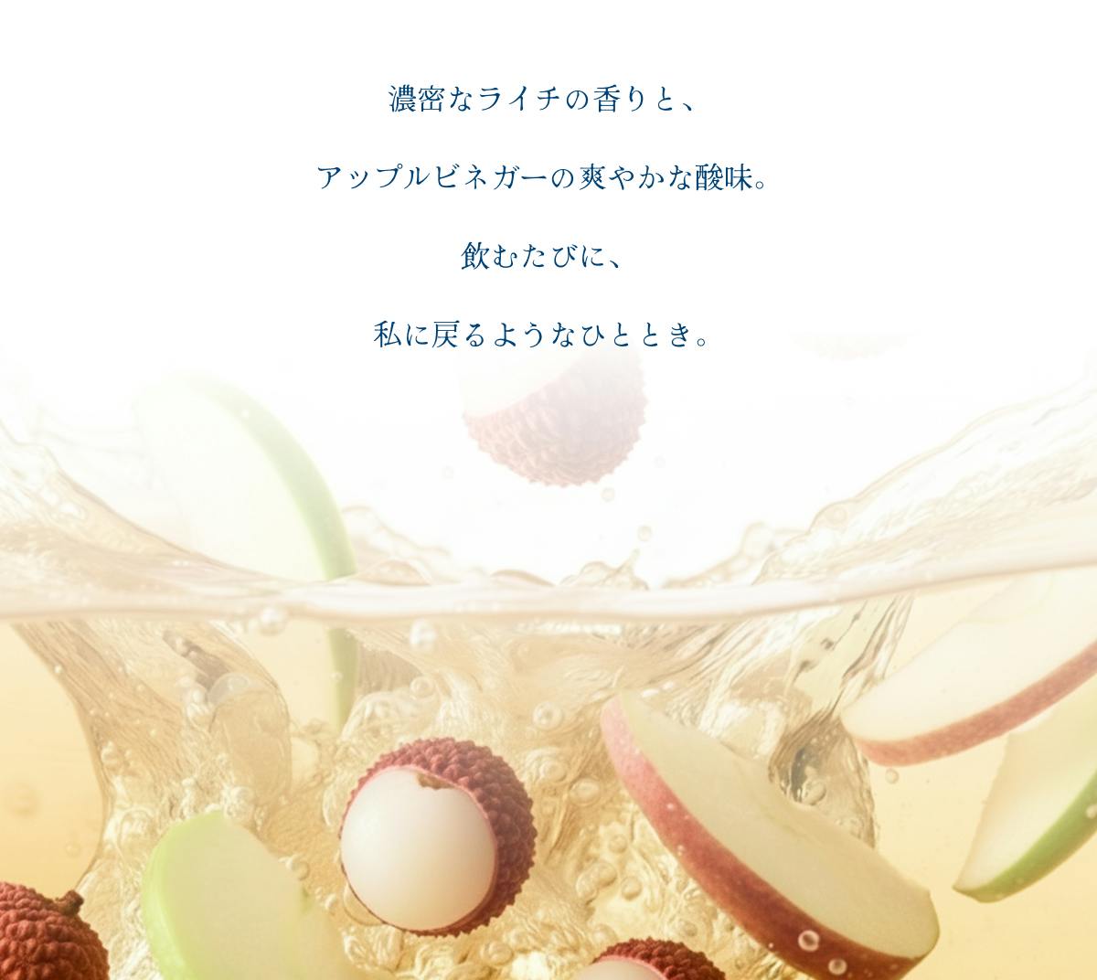 情報と刺激にあふれる毎日。 無理に上げるのではなく、「戻して進む」ための一杯をつくりました。 ライチの香りに、アップルビネガーの軽やかな酸味。 炭酸水で自分のペースに割って楽しめる、クラフトエナジーシロップ。 クラウドファンディングで初回製造を実現し、お客さまへ届けたいです。