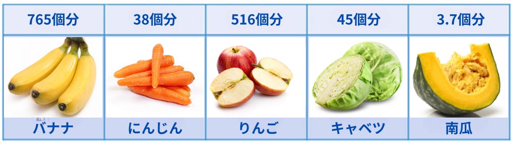 1.5ℓの水素水の抗酸化力は、以下の野菜や果物に匹敵します。