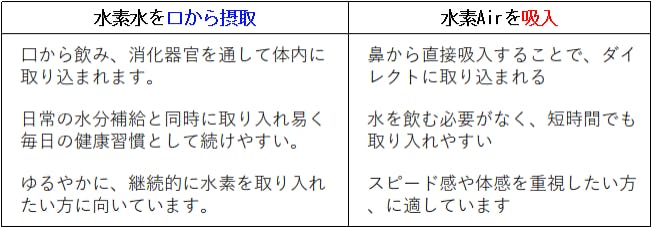 水素水と水素Airは、体内への取り込み方とスピード感が大きく異なります。