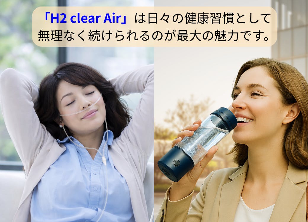水素水は“飲んで続けるケア”、水素Airは“吸って取り込む新習慣”。