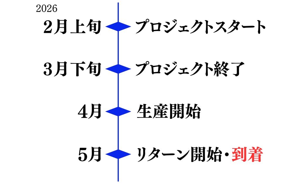 ※本文中に記載させていただいたスケジュールは、あくまでプロジェクト公開時点の予定です。支援購入の性質上、配送遅延のおそれがございます。