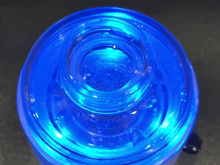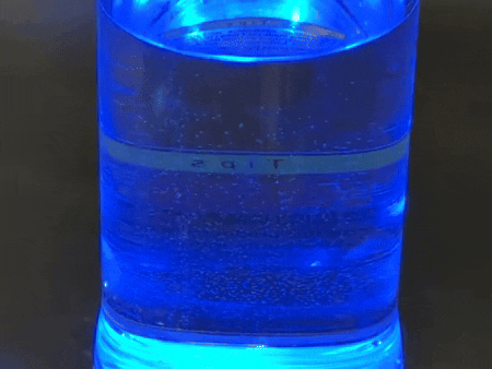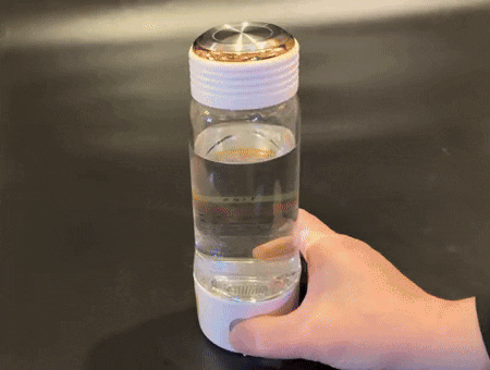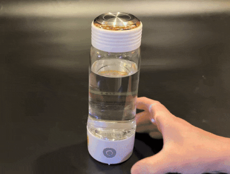 ボタンを2回又は3回押すとスタート音が鳴り、ボトル内のライトが青色に点灯。そこから泡が発生し電気分解が始まったことを示します。