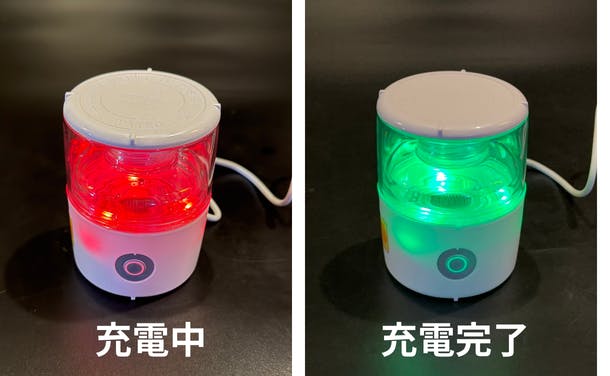 充電が始まると本体が赤色に点灯、充電完了で緑色に変わります。