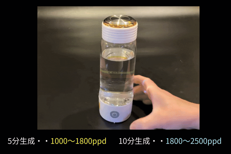 あっという間、高濃度水素水の完成です!