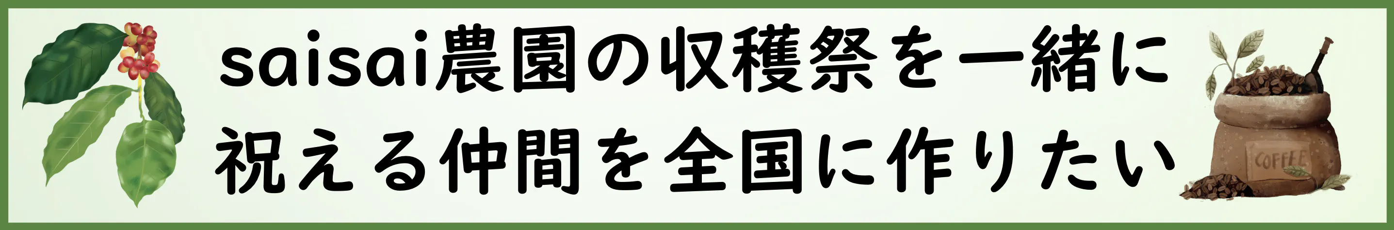 国産珈琲を栽培するsaisai農園の収穫祭を一緒に祝える仲間を全国に作りたい!